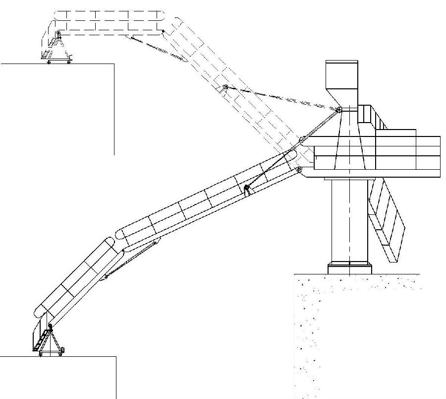 消防喷淋系统等组成,升降回转机构可沿塔架升降。适用于2~30万吨级码头。