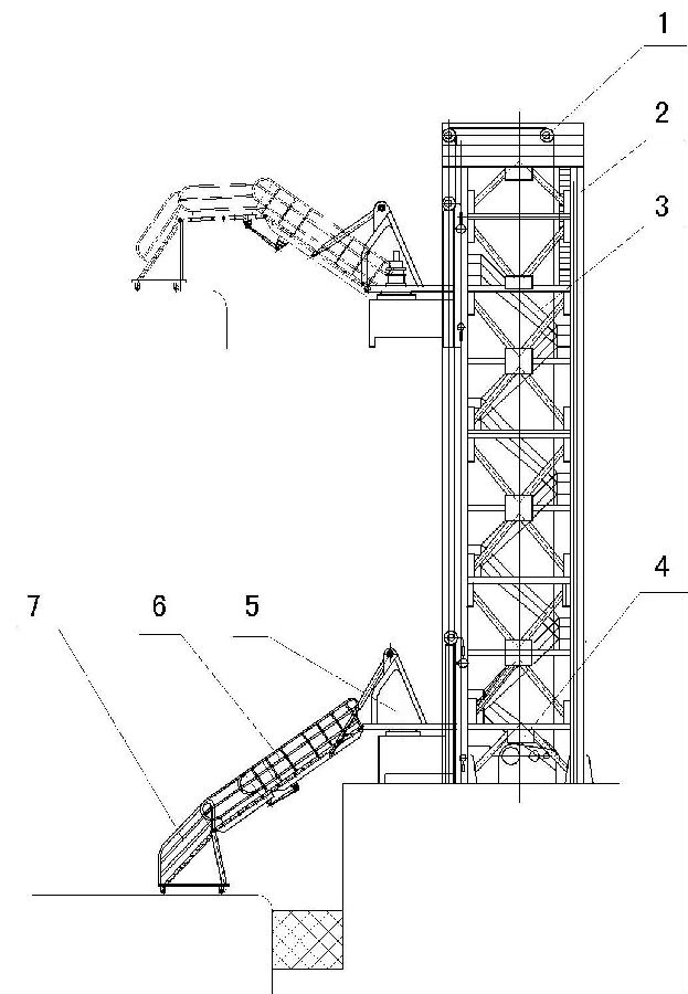前梯:前梯采用平行四边形变踏步结构,踏步踏面始终保持水平。前梯与主梯制件设置双侧调位油缸,就位后液压缸自锁。