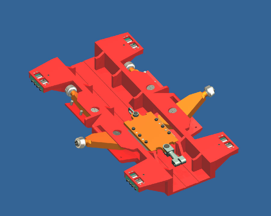牵引爬车有双向牵引功能,自动推车臂在牵引链条的作用下推槽车前进实现槽车与大鹤管的粗对位,当槽车装满介质时爬车将重车推走并实现下一节槽车与大鹤管的粗对位。另外爬车还设有手动倒车臂,必要时需人工操作将倒车臂张启,并在牵引钢丝绳的作用下向后拉动槽车。