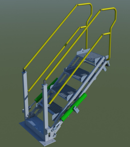 活动梯是为适应油品装卸栈桥与不同高度的槽车之间的连接而建立的安全通道。主要由踏步、扶手、弹簧缸平衡系统、锁紧机构等组成。