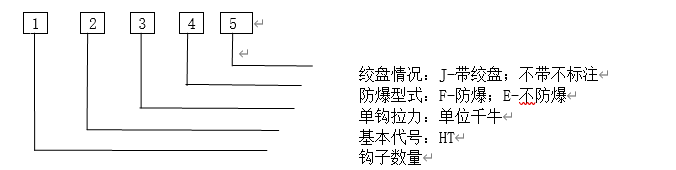 2HT750FJ--单钩拉力750KN,钩子数量2个,带绞盘的防爆脱缆钩。