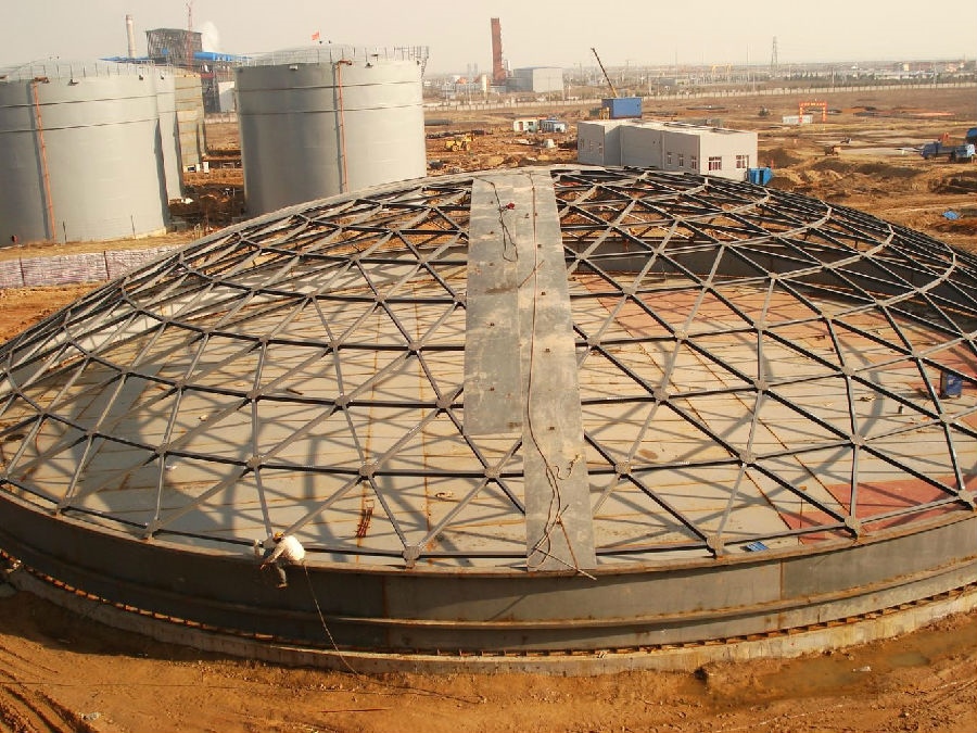 近十年来,中国的网壳结构获得了迅速发展,应用范围日益扩大。网壳结构具有刚度大、自重轻、造型美观、综合技术经济指标好的特点。是大跨度、大空间结构的主要结构形式之一。随着。随着石油量的快速增长,油罐的容量越来越大,肋式罐顶已不适应大型油罐的应用,采用网壳的结构更为合理、经济。我公司追踪国内外zui新科技动态与有关科研院所、大学联合利用有限元分析法开发了系列网壳产品,应用于储罐拱顶、气柜罩顶,其应用收到业主的赞誉。